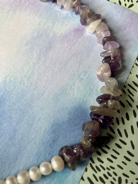 2-Side Choker in Natural Amethyst and Freshwater Pearls