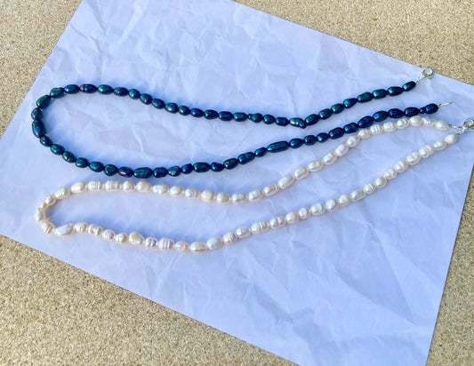 Black or White Rice-shaped Freshwater Pearl Necklace with 925 Silver Clasp