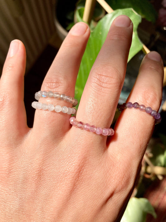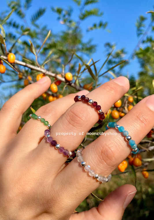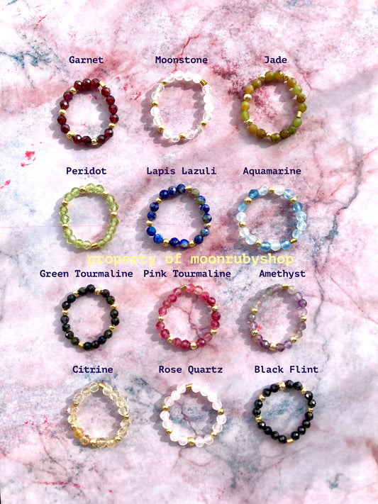Elastic Worry Ring with Natural Faceted Gemstone Beads
