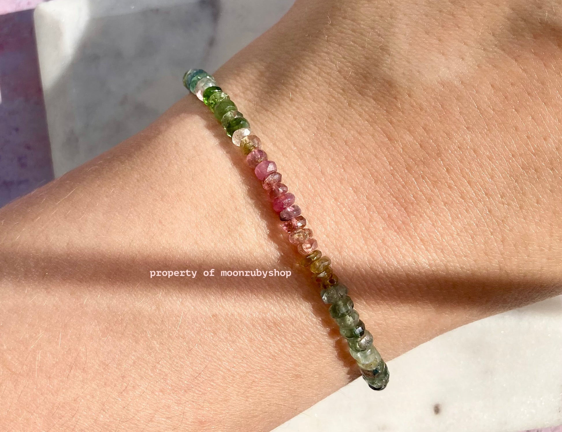 Brighten your day with this minimalist Multi-Colored Rainbow Raw Tourmaline Bead Bracelet, featuring an array of natural, raw tourmaline beads in vibrant colors including fuchsia, pink, yellow, green, black, white, and blue. Each bead is unique, offering a one-of-a-kind accessory that brings joy and positive energy to your daily style.